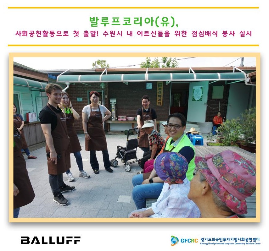 발루프코리아(유) 사회공헌활동 관계자는 “처음으로 시작한 활동인데 직원들도 즐거운 마음으로 함께 참여하고, 어르신들 식사에 도움을 드려 보람이 있는 하루였다. 이번 활동을 시작으로 앞으로 연간 계획을 세워 매년 꾸준히 지역사회에 봉사를 실천해 나가겠다."고 전했다.